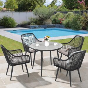 Kimber Street (Formerly Jiomee) Contemporary Patio Set: Square Table and Hand-Woven Rope Armchairs with Cushions