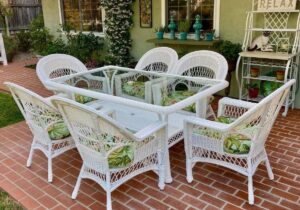 Faux Rattan Woven Chairs: The four armchairs feature a beautiful