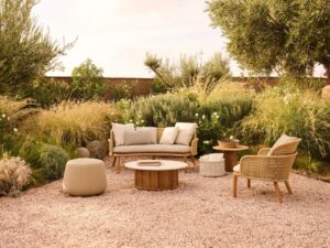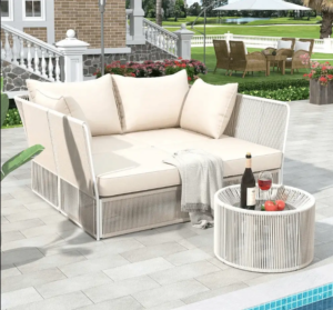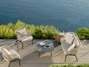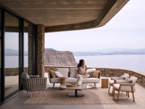Elegant Modern Design: Beautifully crafted outdoor sofa set combining natural