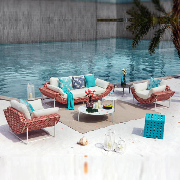 - Qty : set of 2 seater + 2×1 seater & 1 table with optional seat & back cushion & glass