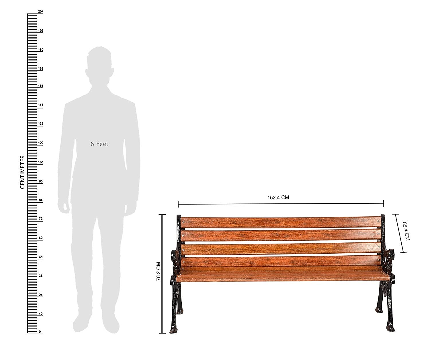 - Leg Support: Cast Iron | Seating Material Slats/Strips – 4mm thick and strong FRP (Fibre-Reinforced Plastic) will make the bench stand for years to come